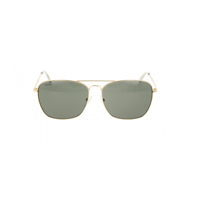 Lente de sol Unofficial, modelo UNSM0017. Este modelo está hecho de metal dorado en forma rectangular ofreciendo un look clásico, apto para toda ocasión. Cuenta con un doble puente que aporta un toque de sofisticación y elegancia. Sus nariceras austables harán de esta pieza una de tus favoritas debido a la comodidad que otorgan. Las micas verdes son ideales tanto para ambientes soleados como con poca luz, reducen el brillo y ofrecen un efecto de comodidad visual. Cuenta con micas de policarbonato que ofrecen mayor resistencia ante impactos y cuentan con proteción UV 100%